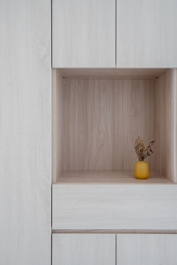淺色木紋與純潔的白色碰撞,整個空間明亮舒適,讓人每次回家都好放鬆~