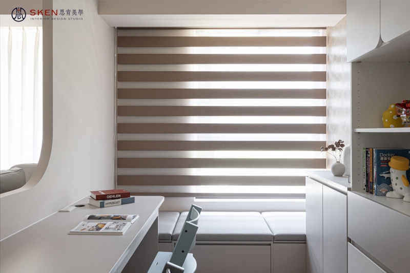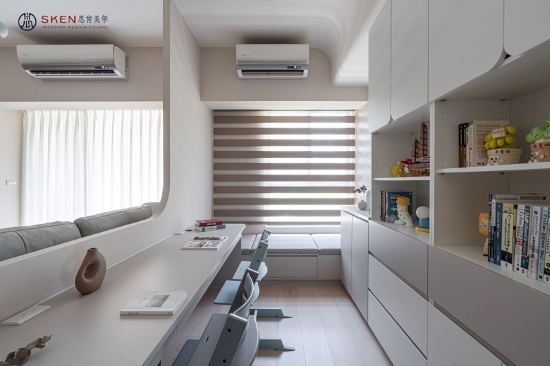 以奶油為主色、利用曲線與圓形讓空間富有層次,整個空間簡約又不失趣味,柔和的感覺,讓人貪念在家的慵懶