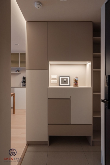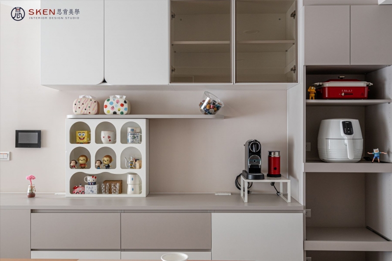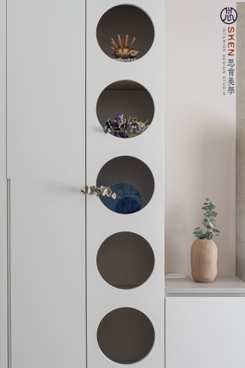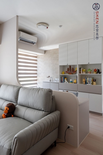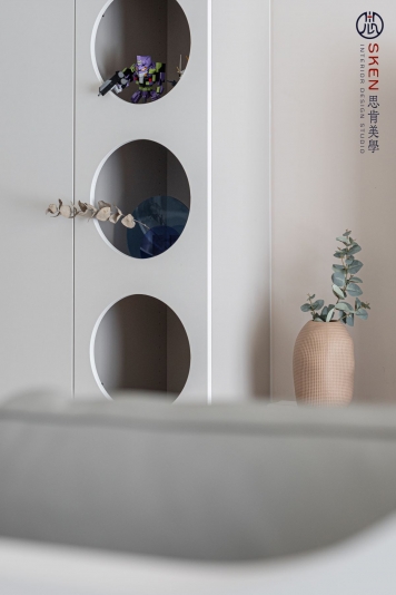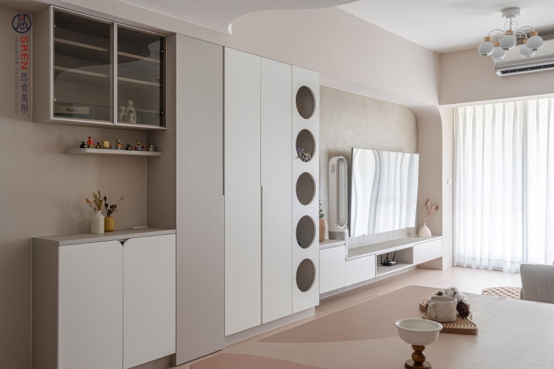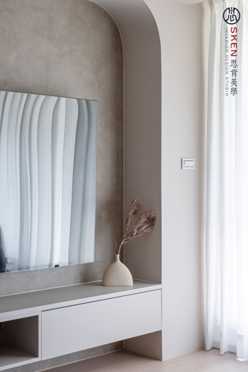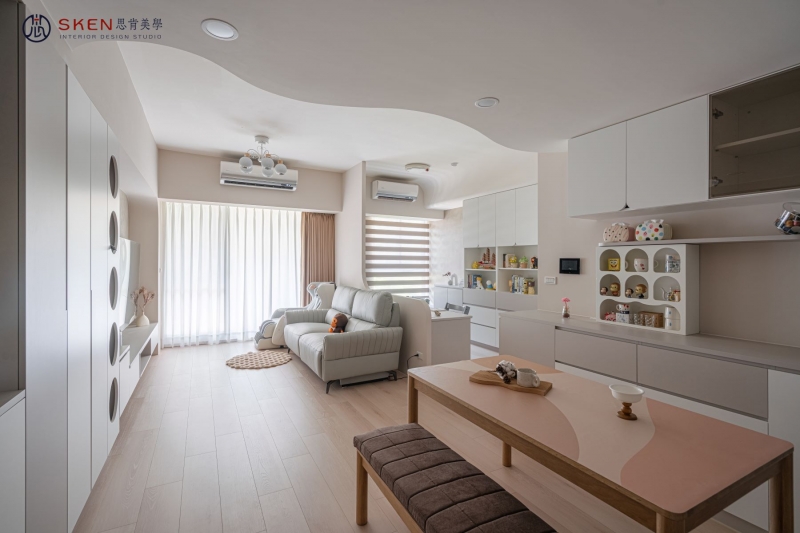 以奶油為主色、利用曲線與圓形讓空間富有層次,整個空間簡約又不失趣味,柔和的感覺,讓人貪念在家的慵懶